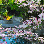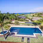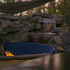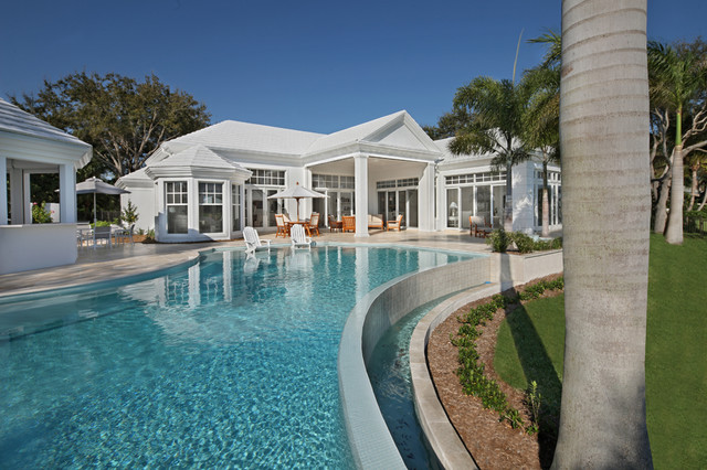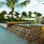Pool color Landscape design Royal palms Water feature Pool furniture