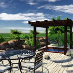 Imagen de patio exótico en anexo de casas — Houzz