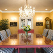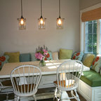 Bohemian Breakfast Nook with Chandelier and Graphic Throw Pillows