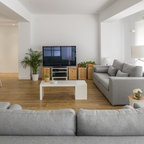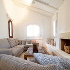 Ejemplo de salón para visitas mediterráneo, grande, con paredes grises y suelo gris — Houzz