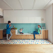 Combinación de azulejo con parquet. QUEDA MUY CHULO. EL PARQUET NOS GUSTARIA EN TONOS GRISES TIRANDO A BLANCO COMO DECAPADO Y QUE DISIMULE MUCHO LOS PELOS DE LOS PERROS, JAJAJ ESO ES LO MAS IMPORTANTE.