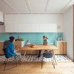 Las claves para que un espacio longitudinal funcione y sea confortable. Un ambiente como el de la imagen se consigue, primero, encontrando el eje de distribución: éste es longitudinal. Segundo, sectorizando según funciones: aquí se ha hecho a través de los revestimientos, optando por azulejo para la cocina, revoque continuo para la envolvente general, madera para el suelo de la zona de estar y baldosa hexagonal a modo de alfombra para el de la cocina. Por último, la clave está en apostar por un mobiliario liviano, que no obstruya la luz natural y sirva de enlace entre los distintos colores.