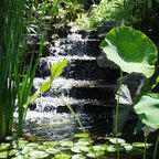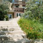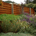 Modelo de jardín actual, de tamaño medio, en patio trasero, con parque infantil — Houzz