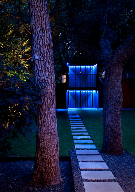 lueders limestone pavers leading to the tigerwood playhouse in blue