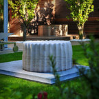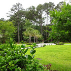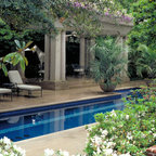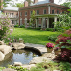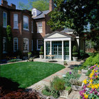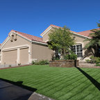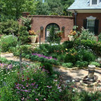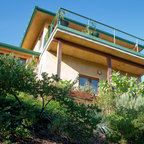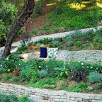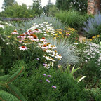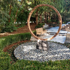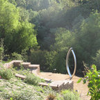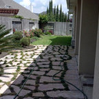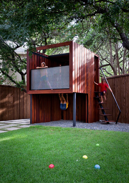 Modelo de jardín contemporáneo, de tamaño medio, en patio trasero, con parque infantil — Houzz