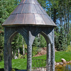 tigerwood playhouse with a steel frame with floating steps. Wish I had this when I was young!
