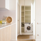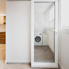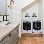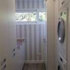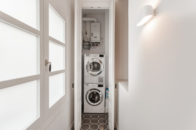 Imagen de lavadero clásico renovado, pequeño, con lavadora y secadora apiladas — Houzz