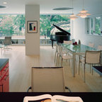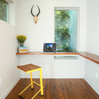 This commercial-to-residential remodel took an abandoned commercial building in southeast Portland and transformed it into an open, light-filled celebration of simplicity. Architect Elizabeth Williams of Pencil Work Studio designed the remodel of the building, which in its hundred-year life had served as nickelodeon, school, place of worship, and dance hall. The loft living space occupies the second floor, while music and rehearsal space occupies the first. After converting the building into a livable loft space, Hammer & Hand returned to remodel the existing kitchen with design by Risa Boyer Architecture.