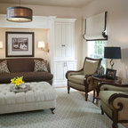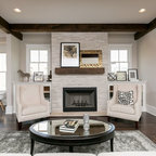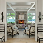 Imagen de salón abierto, vintage, grande, con paredes blancas, suelo de madera clara y suelo beige — Houzz