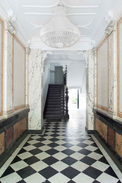 Bettina ya tenía experiencia con obras en otros seis apartamentos, incluyendo su propia casa familiar en Berlín:“La verdad es que siempre he disfrutado comprando casas en mal estado pero que tenían un gran potencial para reformarlas a mi gusto”, dice. En esta reforma –que más bien ha resultado un proyecto de saneamiento–, Bettina ha trabajado de nuevo junto a Raspé: “Antes, éramos inquilina y casera; ahora, constructora y arquitecta. Así nos hemos hecho amigas”, cuenta.El edificio que alberga los dos microapartamentos se encuentra en el berlinés barrio de Charlottenburg. El portal, que vemos en la imagen, ha sido renovado: “Las paredes de estuco estaban pintadas de naranja”, recuerda. Unos vecinos se hicieron cargo de la reforma de las zonas comunes, como pasillos y entradas, pero también el patio. Se trata de una pareja de artistas que, además de su casa, también tienen una tienda en el edificio. “Claus y Susanne Rottenbacher pusieron la obra en marcha, tomándose en serio el proyecto. Desgraciadamente, este tipo de gente maravillosa no abunda en las comunidades de vecinos”, reflexiona Bettina.