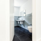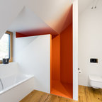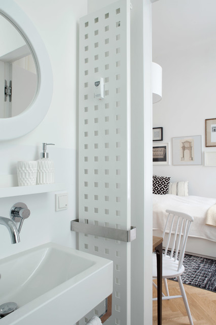 Vor jeder Entscheidung hat sich Bettina Schneuer gefragt, ob sie selbst so wohnen wollen würde. „Alles fest Ein- und Verbaute ist ebenso hochwertig wie langlebig. Ich mag keine Billiglösungen, die sind meist das neue teuer. Und ein so kleines Apartment lebt richtig auf durch gutes Material. Dann funktionieren dazu auch Ikea und H&M-Home.“Sicherlich hatte Bettina Schneuer auch ihre Söhne im Hinterkopf, während sie an der Arbeit war. „Der ältere ist 16, der jüngere 13. In ein paar Jahren werden sie ausziehen wollen“, sagt sie.Der Ältere interessiere sich eher für Kreuzberg, wo er schon jetzt seine Skaterfreunde im Gleisdreieckpark trifft. „Der Jüngere meldet zur Zeit großes Interesse am oberen Miniapartment an. Er hat schon mit seinem Freund abgemacht, dass sie hier übereinander einziehen und eine Haus-WG starten wollen.“ Stil hätte dieser Schritt allemal.Weitere Bilder zur EG-Wohnung und alle Bilder der zweiten Wohnung im Obergeschoss