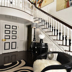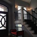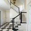 Moderne. Voir le bas de l’escalier. On peut avoir une rampe droite sans avoir à la tourner comme dans notre maison actuellement