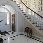 Perched on wooded hilltop, this historical estate home was thoughtfully restored and expanded, addressing the modern needs of a large family and incorporating the unique style of its owners. The design is teeming with custom details including a porte cochère and fox head rain spouts, providing references to the historical narrative of the site’s long history.