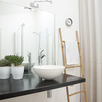 Like the dual sinks separated by a window and having their own tilting mirrors