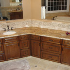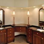 like the open pedestal type sink w/cupboards to hind the mess