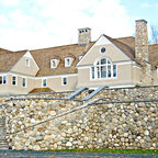 This 3-acre property in the historic town of Concord merges a new home with surrounding topography and builds upon the neighborhood's historic and aesthetic influences. With ten entrances, the success of place making is rooted in expressing interior and exterior connections. Slabs of antique granite, Ipe decking, and stuccoed concrete risers with bluestone treads are instrumental in shaping the physical and visual experiences of the property. A formal entry walk of reclaimed bluestone and cobble slice through a sculptural grove of transplanted, mature mountain laurels and azaleas, and a new driveway sweeps past the front entrance of the house leading to a parking court. A meadow forms an intermediate zone between the domestic yard and the untamed woodland, and drifts of shrubs and perennials lend texture and scale to the home and outdoor spaces.