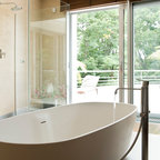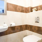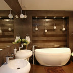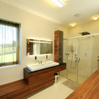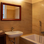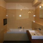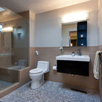 Ejemplo de cuarto de baño actual con lavabo sobreencimera — Houzz