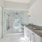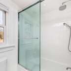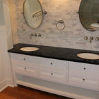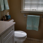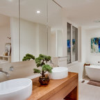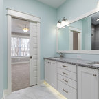 Imagen de cuarto de baño marinero con lavabo encastrado — Houzz
