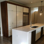 Brookhaven textured laminate cabinets with aluminum edgebanding give this Nichols Hills remodel a fresh new look. Designed and install by Classic Kitchens. Grant Parcell