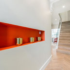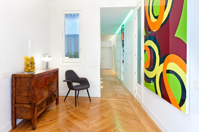 Crea ambiente. Colocar unas lámparas de sobremesa que ofrezcan iluminación ambiental es un recurso habitual para hacer más agradable y acogedor el recibidor, aunque no el único. Las tiras led autoadhesivas permiten iluminar de forma decorativa una moldura del techo o el zócalo de la pared, lo que ayudará a crear ambiente, sin olvidar que resultará muy cómodo y agradable por la noche al sustituir la iluminación general intensa por una más difusa.Cómo crear ambientes envolventes utilizando luz indirecta en molduras