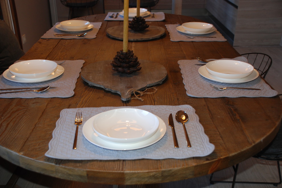 Para este fabuloso resultado, escogimos y proporcionamos todos los complementos, manteles, adornos...todo al detalle para que el cliente disfrute de un interior entrañable.