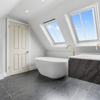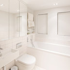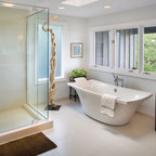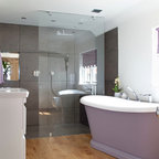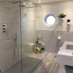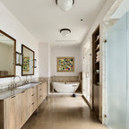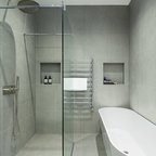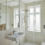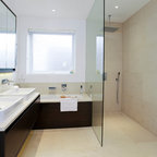 Ejemplo de cuarto de baño actual con ducha abierta y ducha abierta — Houzz