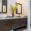 Like the sink - 1 long sink and the wall mounted faucets.