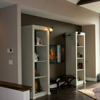 Imagen de salón para visitas abierto, contemporáneo, sin chimenea, con paredes blancas y suelo gris — Houzz