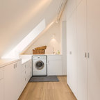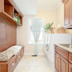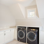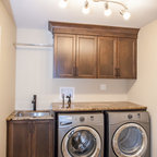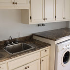 Modelo de lavadero multiusos, tradicional, con lavadora y secadora juntas — Houzz