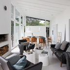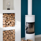 Integrado en el espacio principal de la vivienda, un hogar es una pieza clave para distribuir los elementos principales de un estar: sofá, sillones y butacas. Es recomendable colocar la zona de asientos lo suficientemente cerca para que el calor que desprende se reparta con uniformidad, aunque sin resultar excesivamente agobiante. La disposición de la leña puede formar parte del conjunto de la chimenea de modo decorativo, utilizando la base situada bajo la zona de fuego como en este caso, de modo que se integre en la percepción visual y composición estética del entorno.