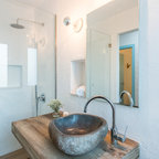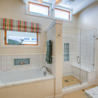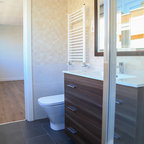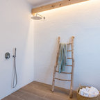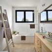 En el baño, juega con elementos de madera natural y piezas de obra para el mueble bajolavabo y la bañera o ducha. Combina colores claros y luminosos, como el blanco y el beige, con algunos detalles en gris.Consejo Houzz: Sustituye los clásicos toalleros de pared por una escalera de madera o bambú.10 ideas para redecorar el baño por muy poco dinero