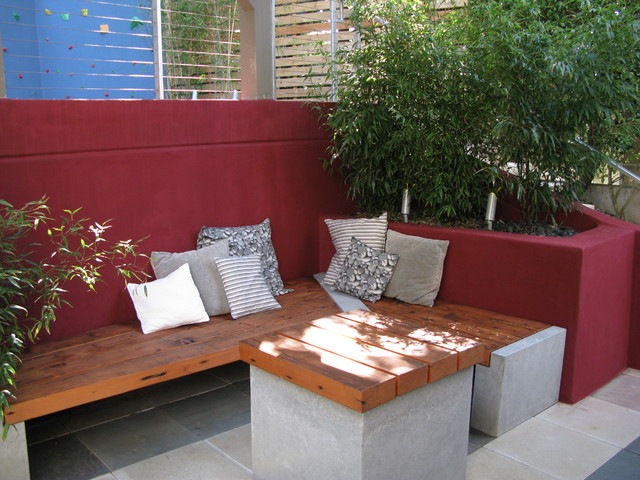 Patio Set 1: The wood/ concrete combo makes for the perfect patio set in Colorado. There is enough seating for a family of 5, and dog hair will be easily cleaned. Please click on the link and find the similar styles that match. There is a red patio set (that you will see located on the right-hand side, that I think you will love!)