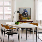 Una zona de día compacta. Cocina, sala de estar, comedor y estudio gozan aquí por igual de un ambiente bien iluminado y confortable. La apuesta por una envolvente neutra da además protagonismo puntual a muebles y complementos. Suprimiendo compartimentaciones se maximiza la superficie útil y se da protagonismo a la luz natural. Estas decisiones parecen lógicas, pero ¿cómo se consigue que cada espacio tenga su independencia? Asignando superficie a cada una de las actividades y con una ubicación adaptada al eje de circulación del espacio. Diseñar un ambiente en torno a una ventana o balcón es a menudo una buena idea ya que de este modo el espacio tiende a expandirse hacia el exterior. Por eso no conviene confinar las ventanas dentro de un equipamiento compacto y fijo, como el de la cocina. Lee aquí un artículo completo sobre este proyecto en Barcelona