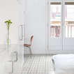 Esta luminosa vivienda se encuentra situada en la última planta de un edificio ubicado en uno de los puntos más singulares del barrio del Raval, en el cruce de una pequeña plaza y una calle rodada. Esta ubicación dota al piso de dos aspectos poco comunes en un barrio caracterizado por calles estrechas y viviendas sombrías. Por un lado, disponer de dos fachadas con balcones garantiza luz a raudales y ventilación natural. Por el otro, estar situado en la última planta y delante de la plaza permite disfrutar de unas inmejorables vistas sobre la montaña de Montjuïc.