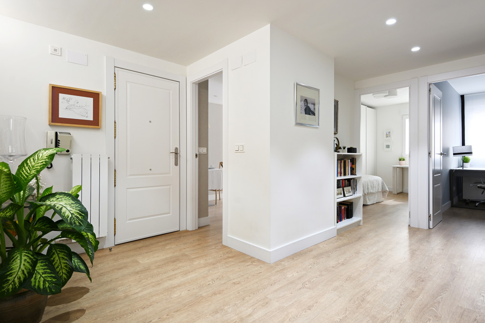 Amplio recibidor que toda la vivienda. El suelo un laminado de Porcelanosa con un tono de madera muy natural