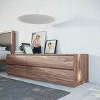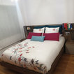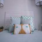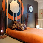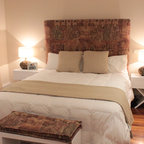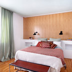 Diseño de dormitorio principal, actual, pequeño, con paredes blancas, suelo vinílico y suelo marrón — Houzz