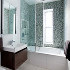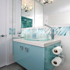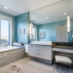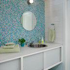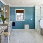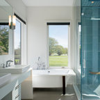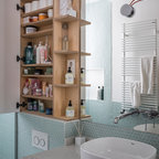 7. Un baño azul 100 % frescoPara la reforma de este cuarto de baño, el estudio BarronKress ha apostado por unas teselas de hexágono en tono verde aguamarina. Se combinan con una baldosa de gran formato cuadrada en gris cemento y mobiliario a medida en madera.Más ideas e inspiración en la sección ‘Baño’ de la Revista Houzz España¿Y A TI?¿Te gustan los baños azules? ¿Cuál de estos siete va más contigo? Participa en la sección de comentarios