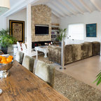 Diseño de salón mediterráneo con paredes blancas — Houzz