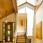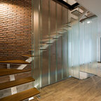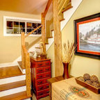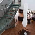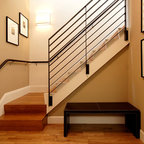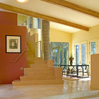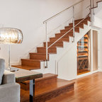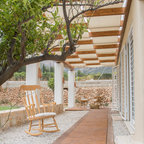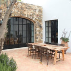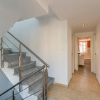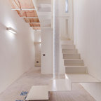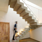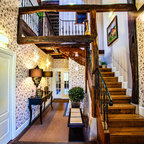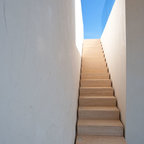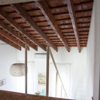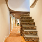 Diseño de escalera de caracol, mediterránea, con escalones de madera y contrahuellas de madera — Houzz