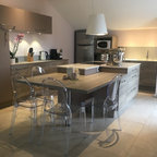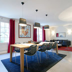 Modelo de comedor de cocina contemporáneo, grande, sin chimenea, con paredes blancas — Houzz