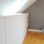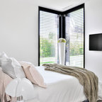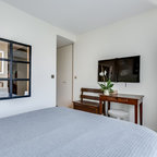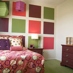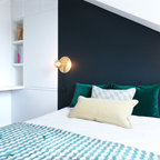Diseño de dormitorio principal, actual, grande, con paredes verdes y suelo de cemento — Houzz