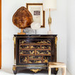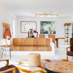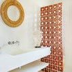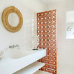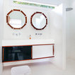 Como en el despacho, también aquí el mueble bajolavabo en blanco y negro, con tiradores marrones, se inspira en un clásico diseño de Charlotte Perriand. La propuesta casa muy bien con los estilizados espejos redondos de los años 1970 procedentes de Italia. El taburete en mármol es el modelo Pura, de Adolfo Abejón.Espejos: De simple accesorio a pieza decorativa esencial