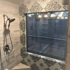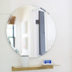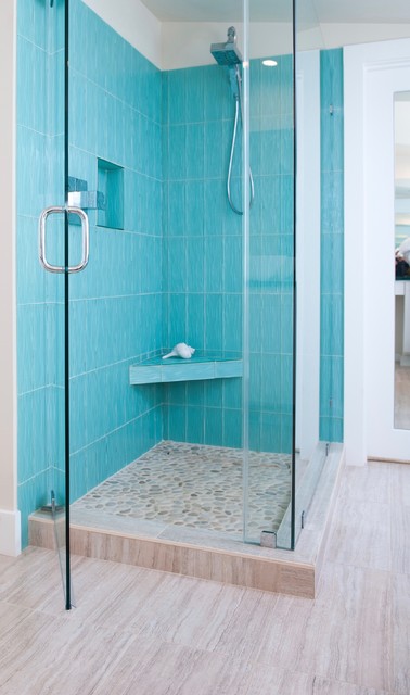 Small shower corner bench like this. Maybe half wall on one side of shower.