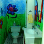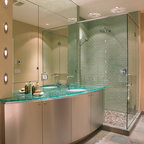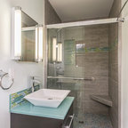 Go to floor with glass next to toilet. Forget the 1/2 wall