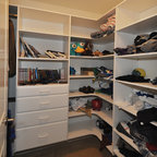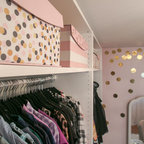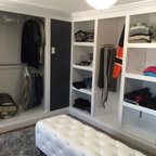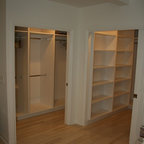 A small, spare bedroom is now a spacious master closet that is accessed from the bathroom.