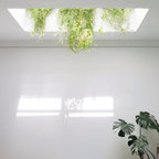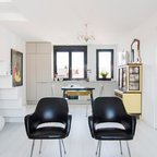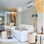 Ejemplo de salón para visitas abierto, ecléctico, de tamaño medio, sin chimenea y televisor, con paredes blancas y suelo de madera clara — Houzz