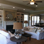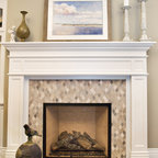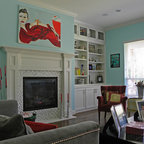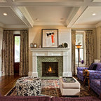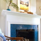 Foto de salón clásico con marco de chimenea de baldosas y/o azulejos — Houzz