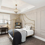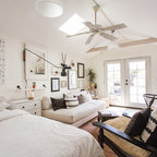 Foto de habitación de invitados clásica renovada, grande, sin chimenea, con paredes blancas y moqueta — Houzz