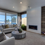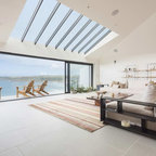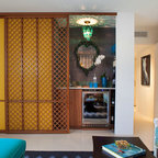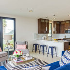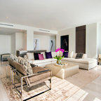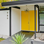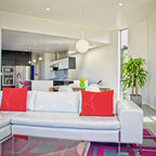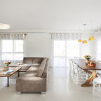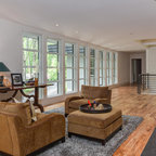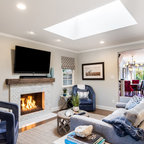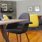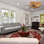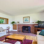 Diseño de salón retro con paredes blancas — Houzz