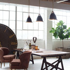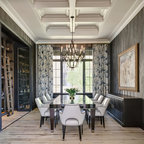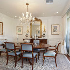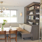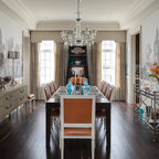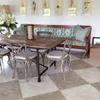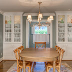 Ejemplo de comedor vintage, de tamaño medio, abierto, sin chimenea, con paredes blancas y suelo de baldosas de porcelana — Houzz